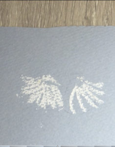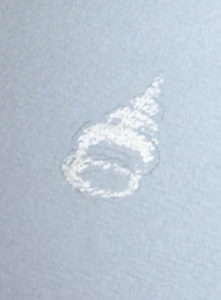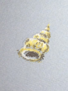 同じように白のパステルで貝の明るい部分を描きます。