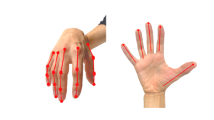 右の写真では、指の関節を示しています。