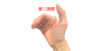 指の関節は、上から第一関節、第二関節、第三関節と並んでいます。