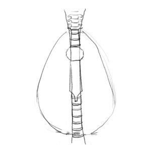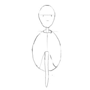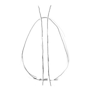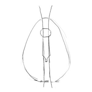 まずは卵を描いて、真ん中に背椎を描きます。