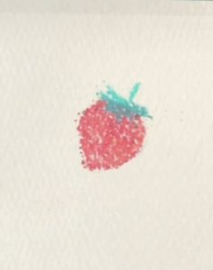 実の部分を赤のパステルで描きます。
