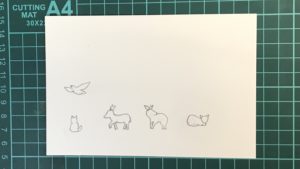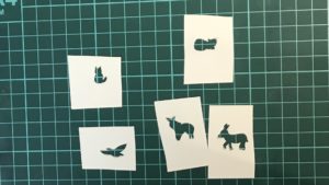 初めに、猫、小鹿、鳩などの型紙を用意します。