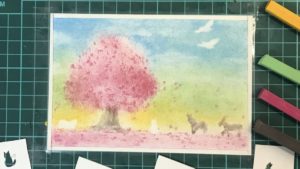 今回は、舞い散る桜の風景をパステルで表現してみたいと思います。