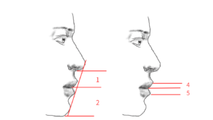 左の赤線は、上唇の基本線になります。