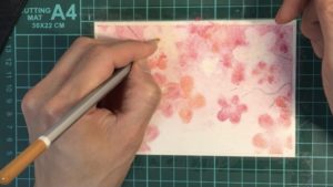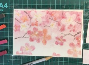花びらを書き込んだら、もう一度、梅の枝を描きます。