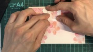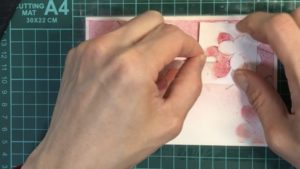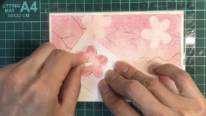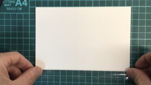 次にはがきサイズの画用紙をカッターマットにセットします。