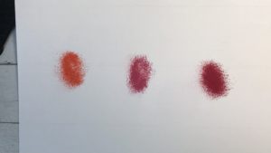 朱赤、紅色、赤のパステルを茶漉しで削ります。